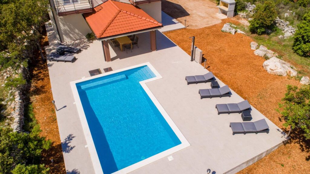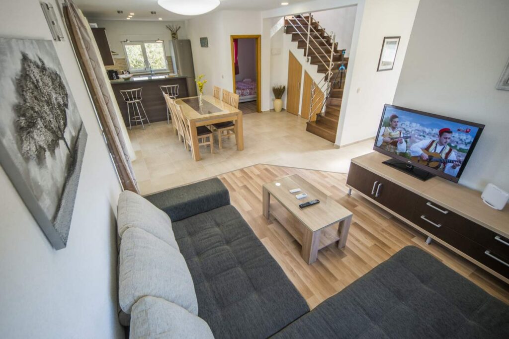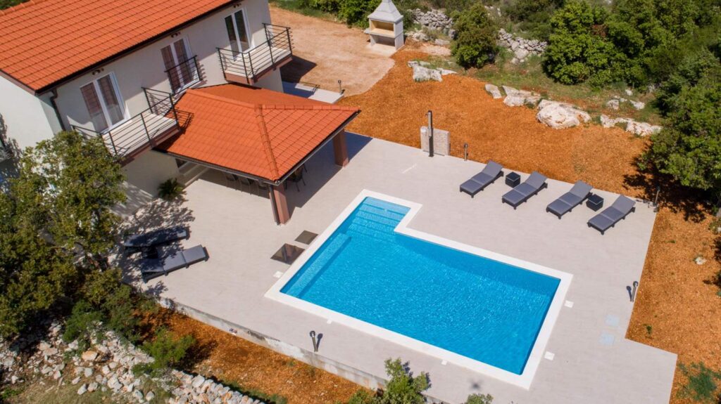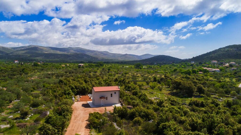 Montažna kuća je izgrađena po ideji investitora, a u dogovoru sa našim arhitektama. U kombinaciji dekorativne demit fasade, sjajno se uklopio klasičan crep. Pored izgradnje objekta realizovana je izgradnja bazena i pratećih sadržaja.