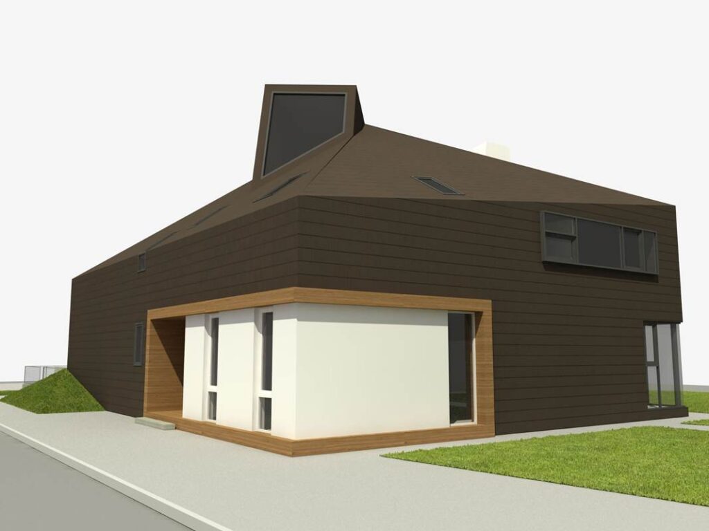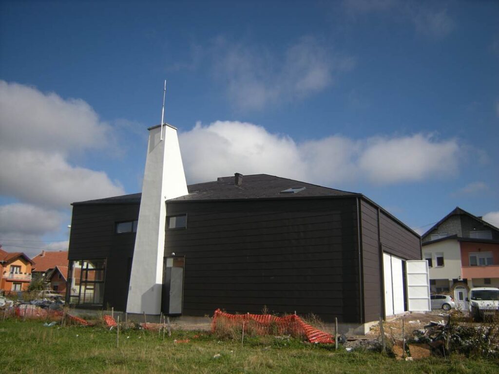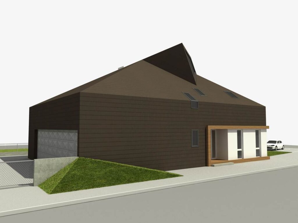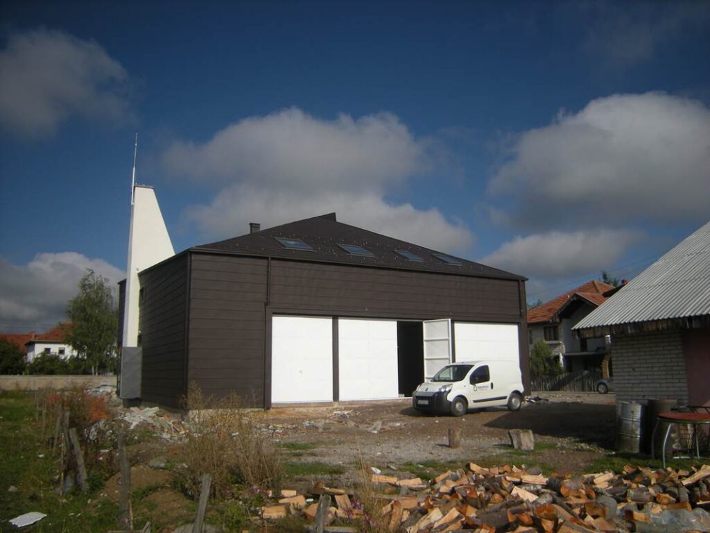 Montažni spratni objekat izgrađen po idejnom rešenju i projektu investitora, uz određene korekcije u dogovoru sa našim arhitektama. U kombinaciji dekorativne fasade, sjajno se uklopio atipičan krov antracit boje.